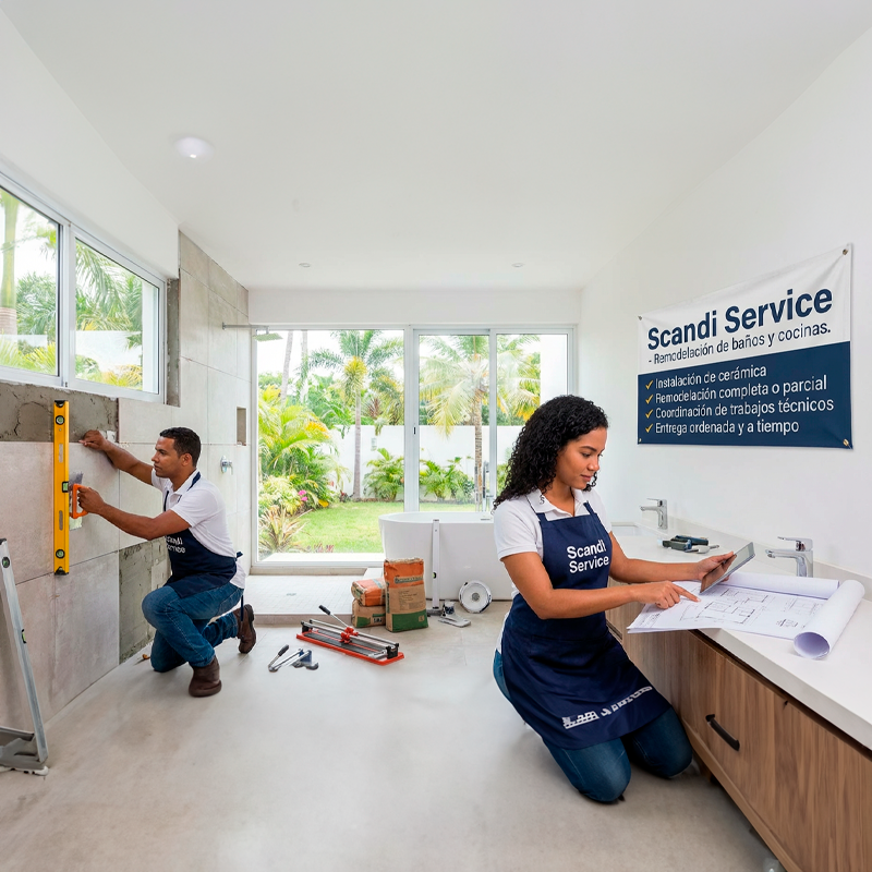 Realizamos remodelaciones funcionales y estéticas en baños y cocinas, cuidando la correcta instalación de cerámica, muebles, plomería y detalles finales para un resultado duradero y bien ejecutado.
